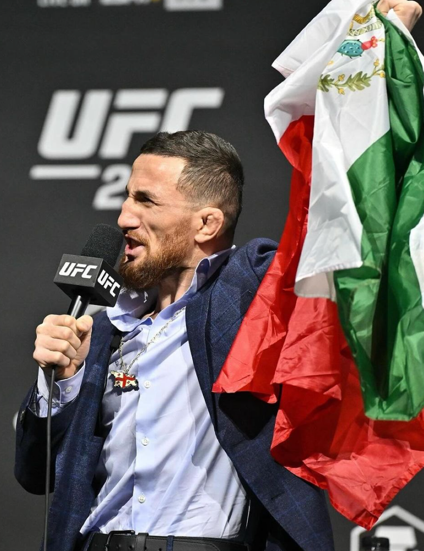 “I’m going to make Mexicans happy because the Mexican people need to feel proud. I’m going to make Mexico proud; I represent Mexico. Let’s go, guys!” Merab Dvalishvili declared while holding a Mexican flag. Even though the Georgian fighter has no direct ties to Mexico, his gesture earned applause from fans, and since then, he has been embraced as one of their own.